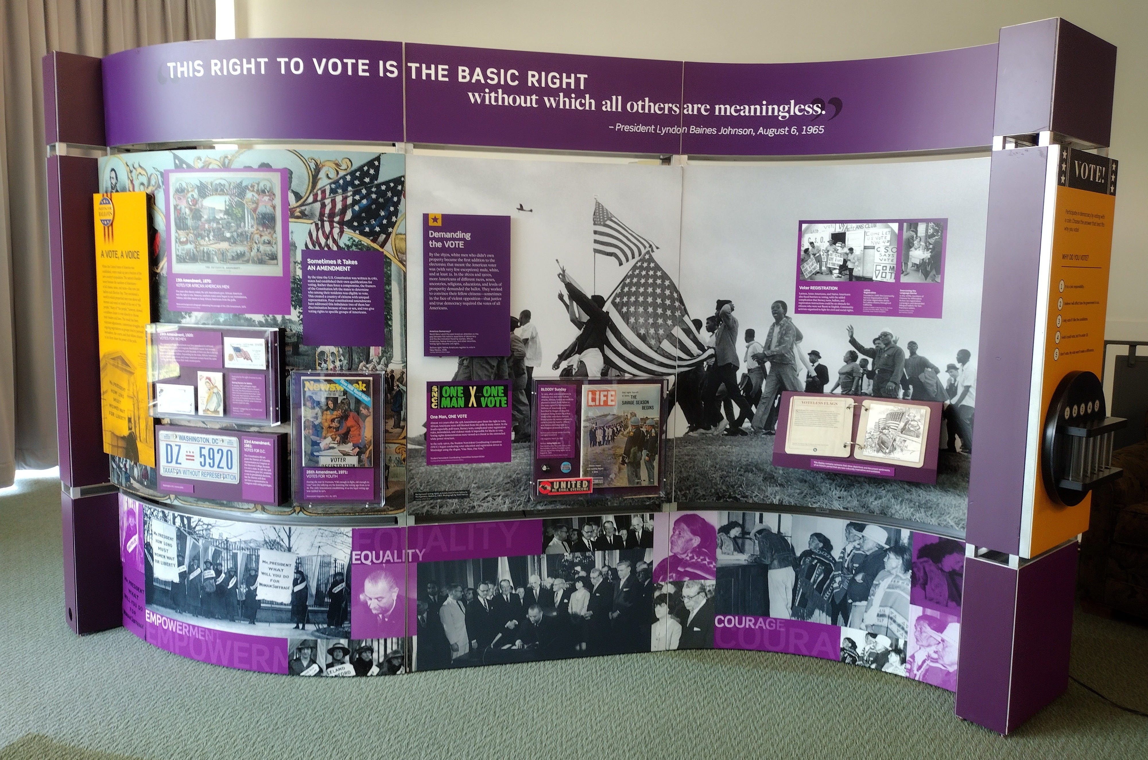 The end of the exhibit briefly touches on a major threat to voting rights today – gerrymandering. Gerrymandering is the process of creating voting districts based on voter data in order to favor a certain political party. Politicians select their voters and therefore create uncompetitive districts. Because of this, many voters feel like voting doesn’t matter. Majority Rules argues that ranked choice voting (RCV) is a potential remedy to this unfair system. RCV ensures that the winner of an election receives the most votes. A voter ranks candidates according to their personal preference. The ranking system creates an instant run-off if one candidate does not receive more than fifty percent of votes. For example, if a voter’s first choice has such a low percentage that they have no chance of winning, then their second choice vote is used, and so on. RCV creates more competitive elections in partisan strongholds and also makes it possible for independent and third-party candidates to be viable in elections.