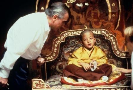 Kundun (1997) is a stunning and profound biopic of the early life of His Holiness the 14th Dalai Lama. A few months ago, I had no idea this Scorsese film even existed. I learned about it because it was being screened at the Tribeca Film Festival to honor the 90th birthday of His Holiness.1 The making of documentary In Search of Kundun directed by Michael Henry Wilson is a worthy companion piece. It includes incredible observational footage from Morroco where the film was shot, and has interviews with His Holiness and several Tibetan cast members and consultants.